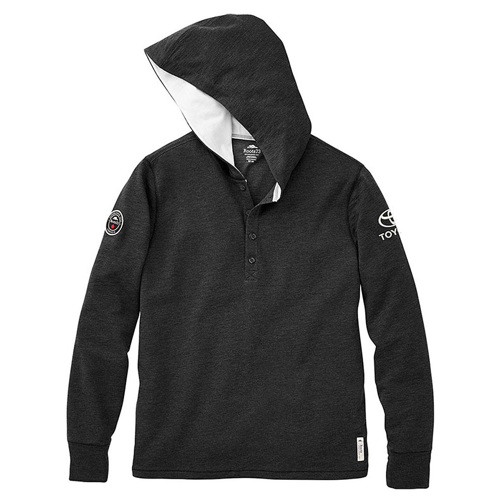 Keep warm around the campfire on those chilly nights with your Toyota Roots73 Hoody. Featuring a Henley-style four button placket, vintage white inner hood, cuffs with thumb exits and a unique exterior key pocket built into the back hem.
