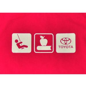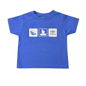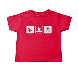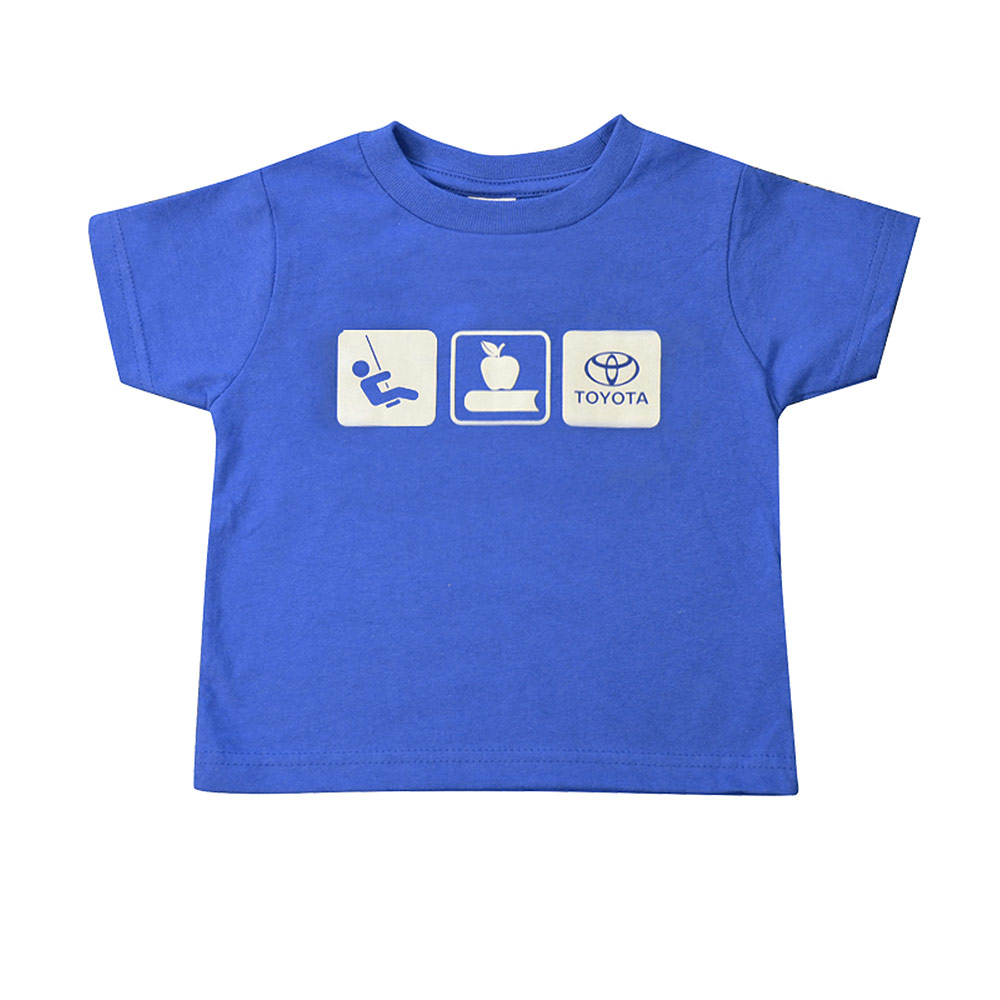 100% cotton jersey t-shirt featuring a ribbed crew neck with a double hemmed sleeve. CPSIA compliant (Consumer Product Safety Improvement Act). Includes custom Toyota design on front.