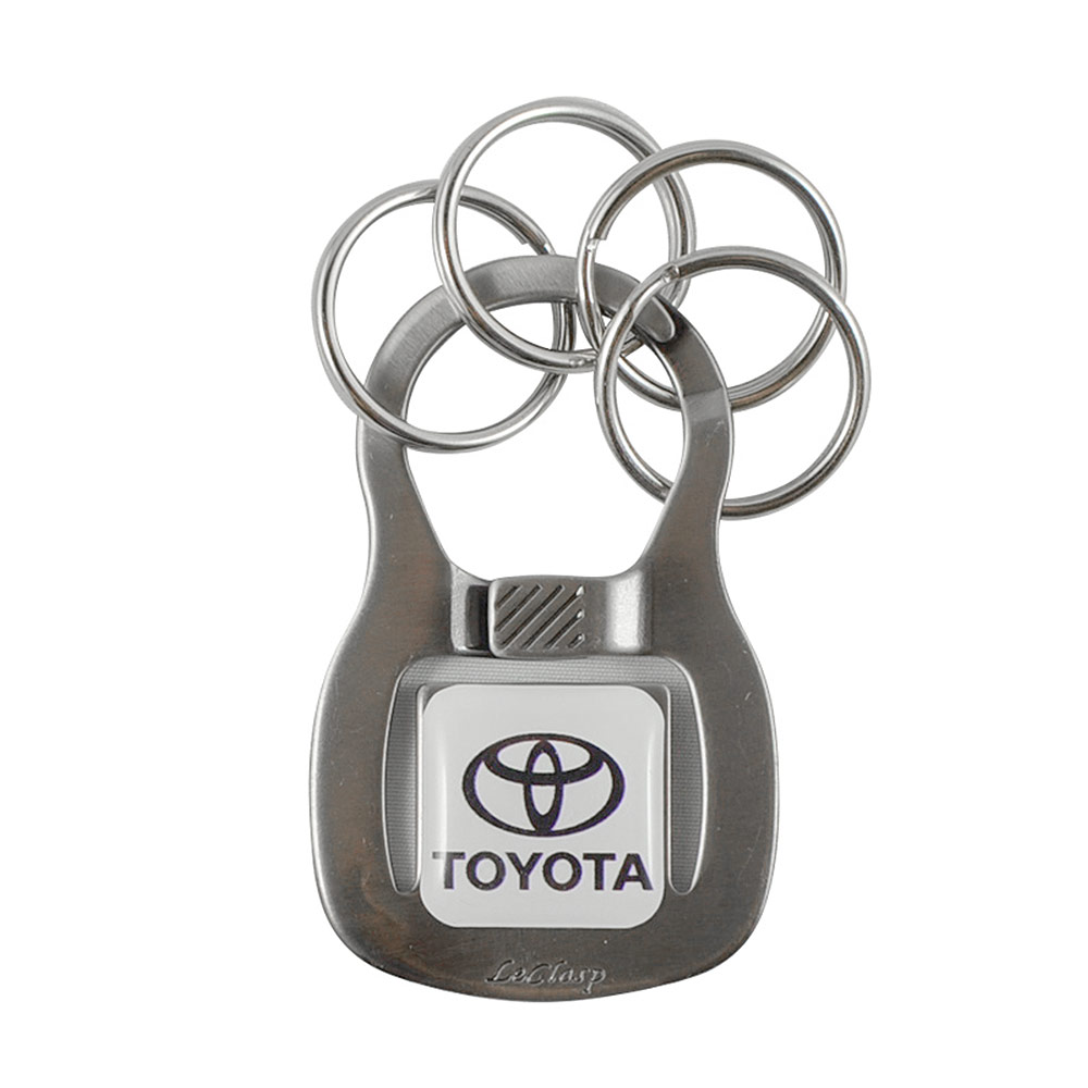 The patented LeClasp™ Key Holder incorporates an ingenious friendly multi-ring mechanism that allows for the quick attachment and removal of keys. Helping to avoid frustrations and broken nails. Brushed nickel finish.